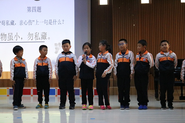 10月17日,德馨珑湖小学举行二年级《弟子规》诵读比赛,6个班级226名学生参加比赛。本次比赛采取接龙诵读的方式,在规定时间(3分钟)内淘汰率最低的班级获胜。通过比赛,激发了孩子学习传统国学的热情,彰显了团队合作精神,真正引领孩子走向书籍。